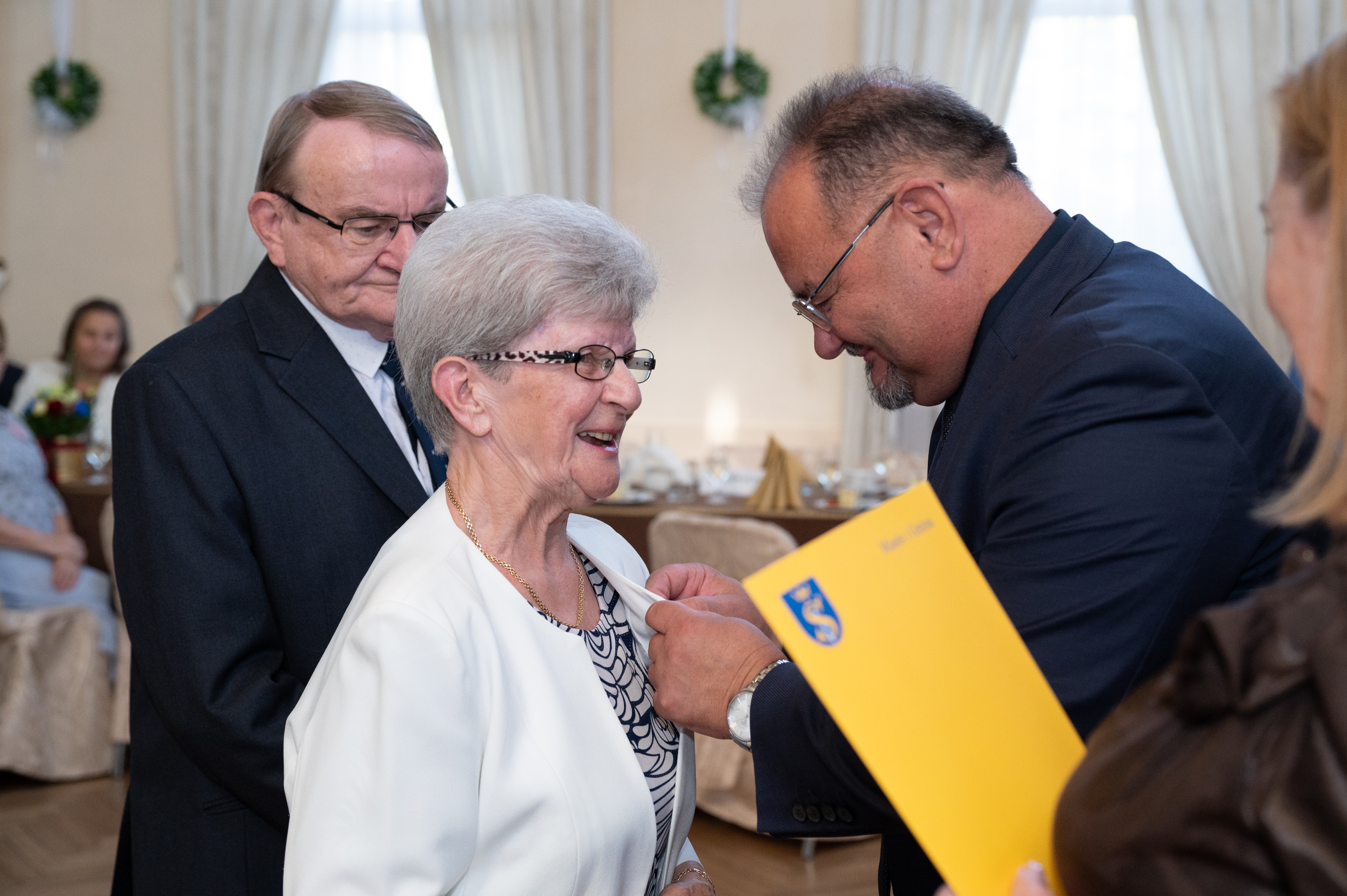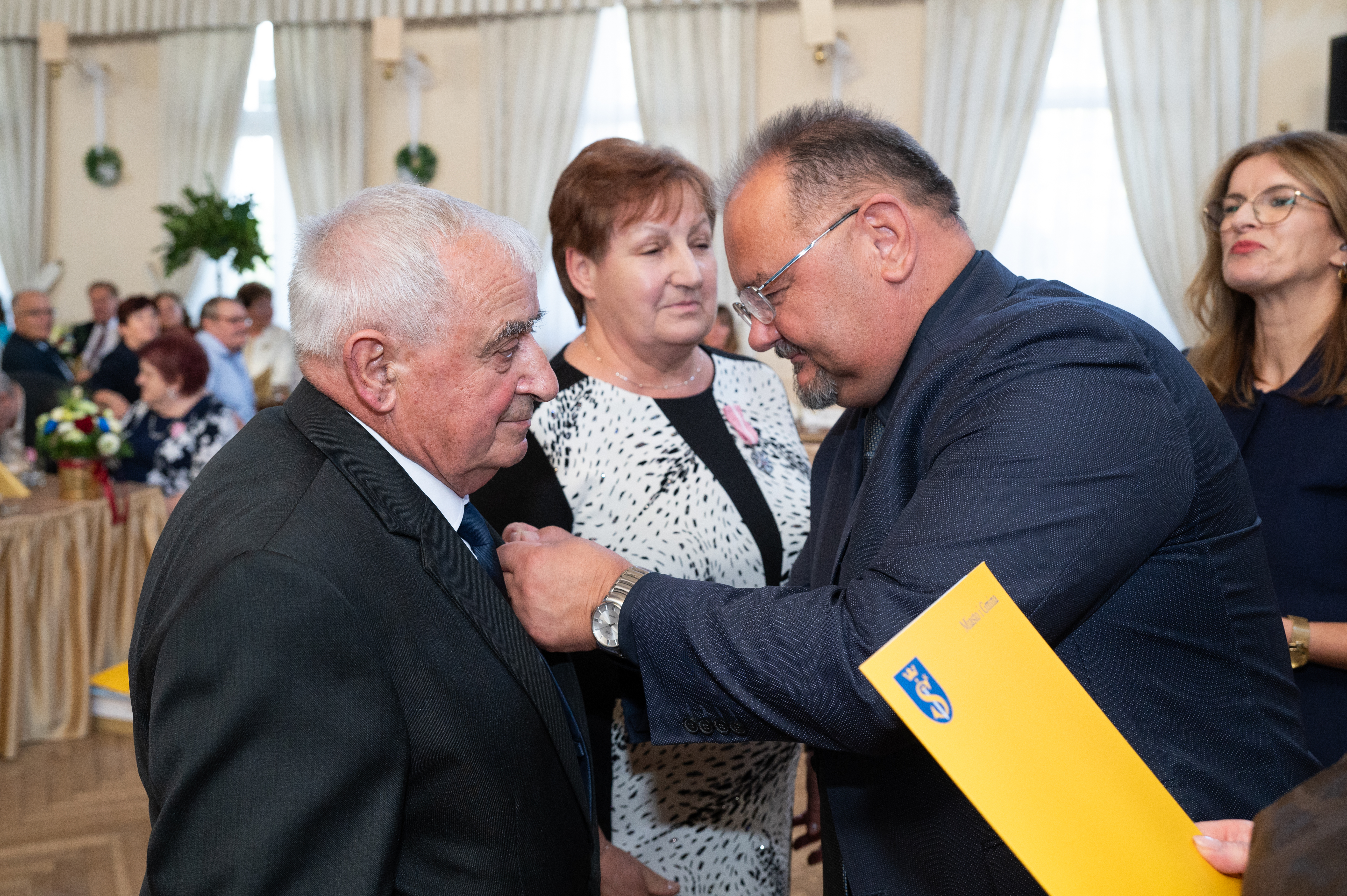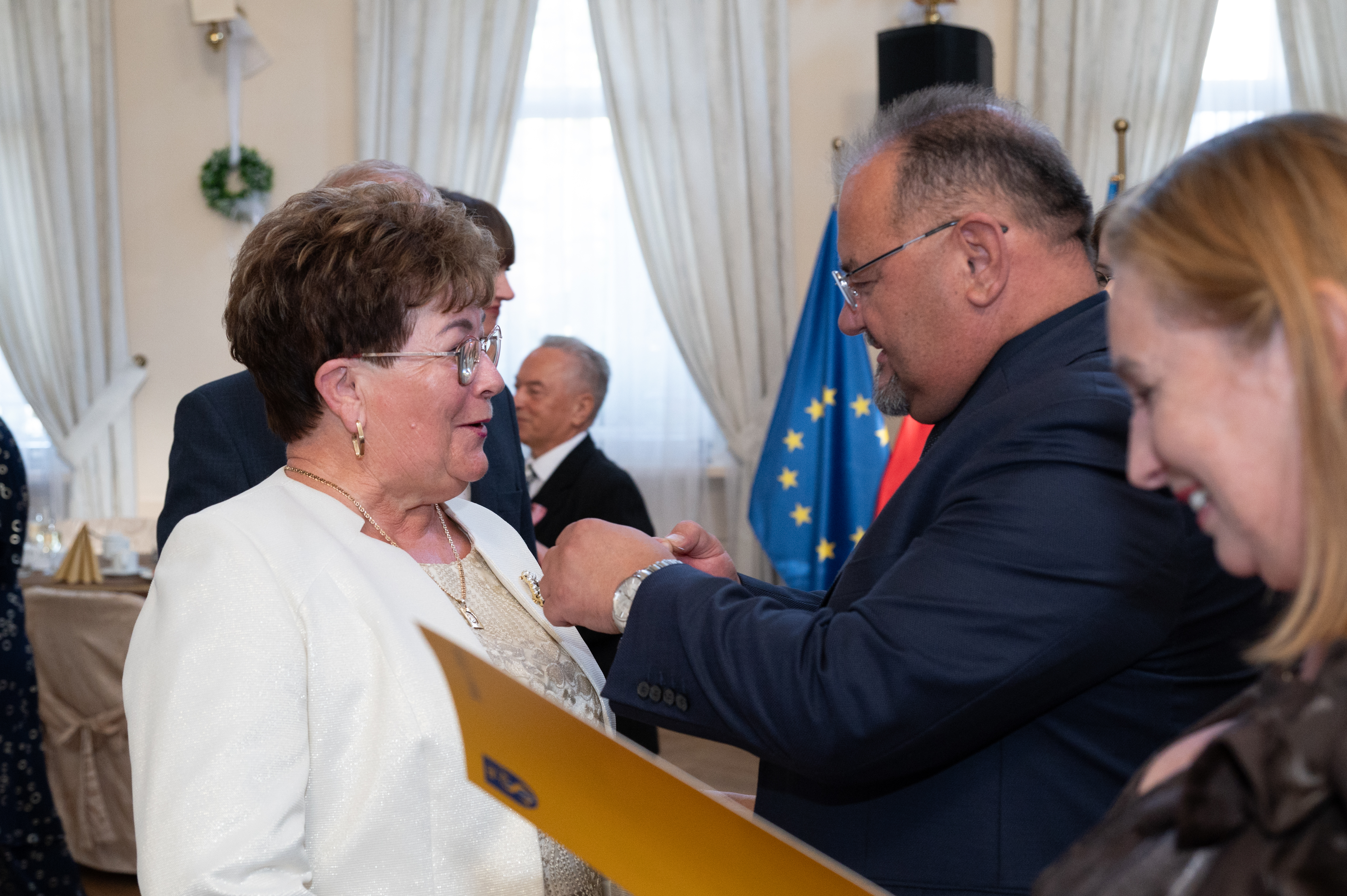 Podczas spotkania burmistrz Skawiny, Norbert Rzepisko, wręczył Jubilatom Medale za Długoletnie Pożycie Małżeńskie, nadane jeszcze przez Prezydenta RP Andrzeja Dudę.