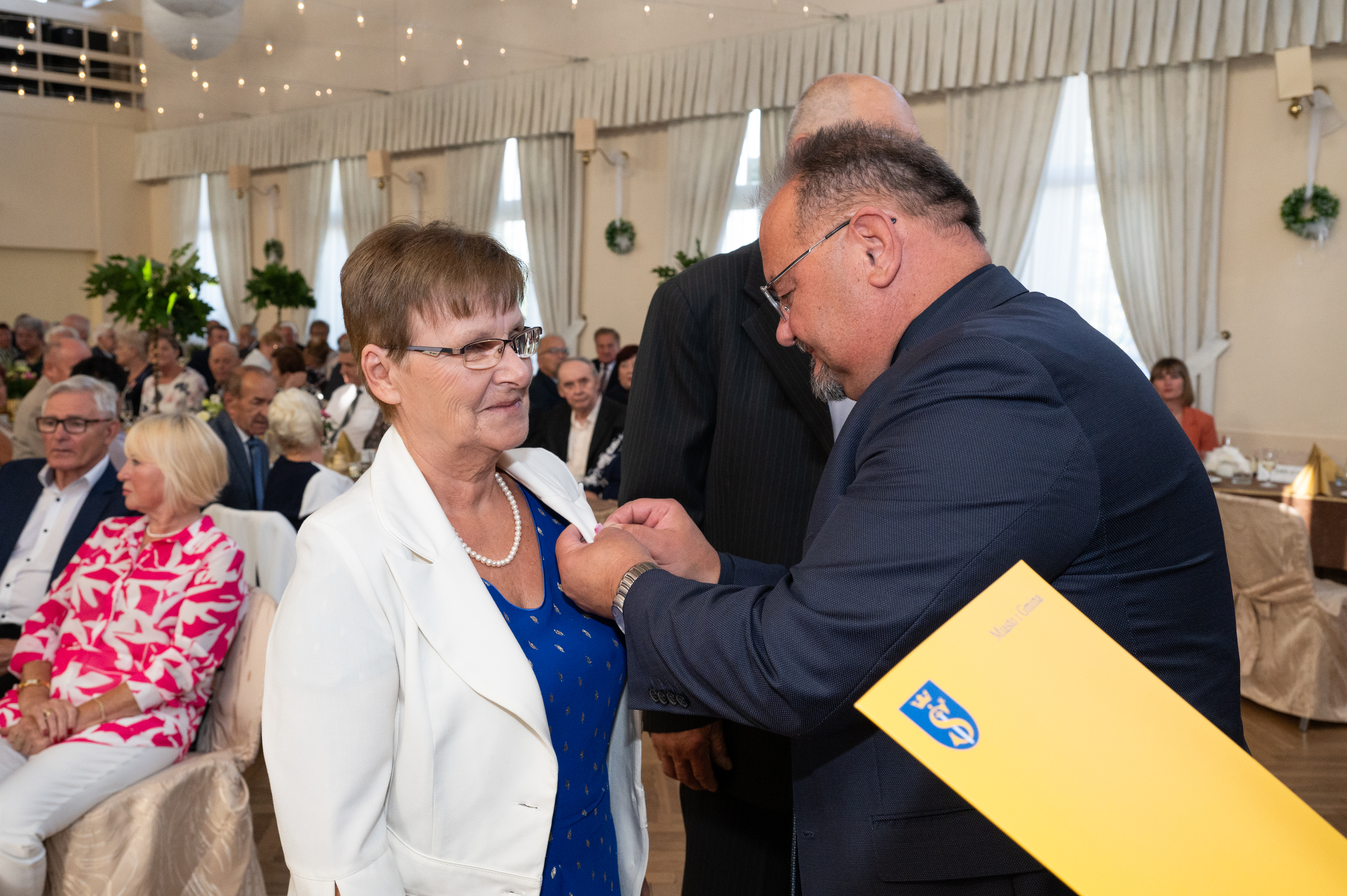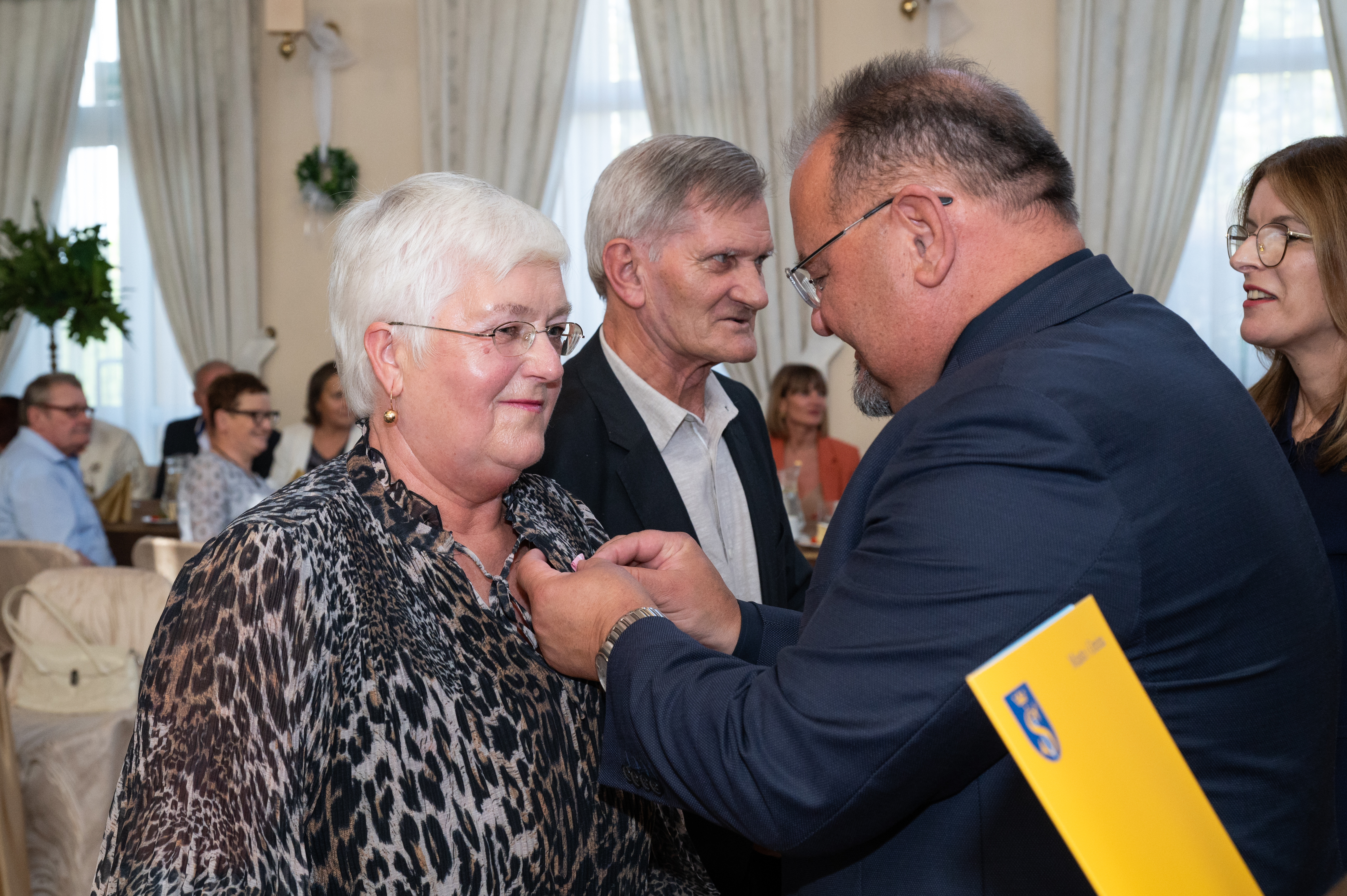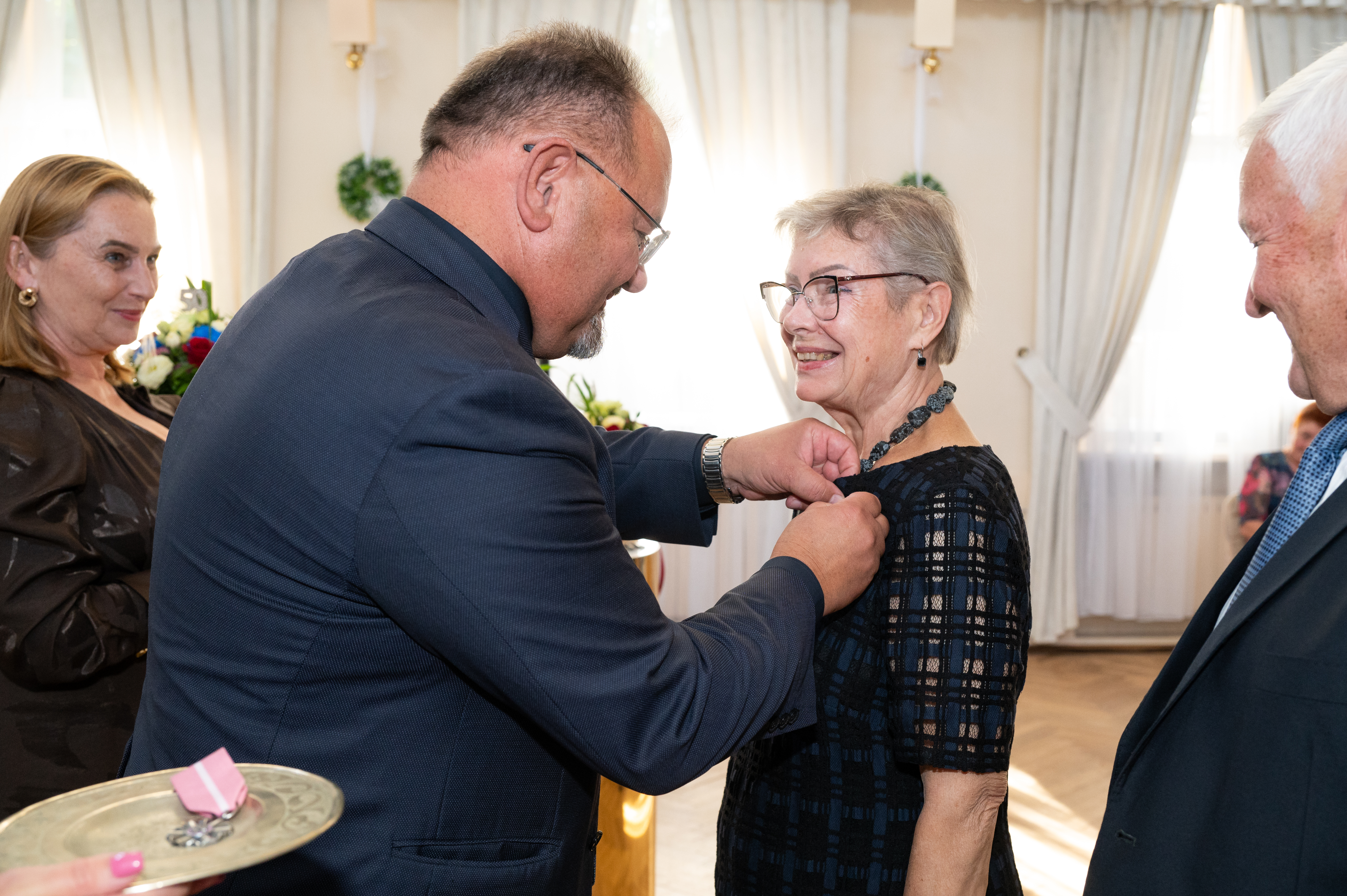 Podczas spotkania burmistrz Skawiny, Norbert Rzepisko, wręczył Jubilatom Medale za Długoletnie Pożycie Małżeńskie, nadane jeszcze przez Prezydenta RP Andrzeja Dudę.