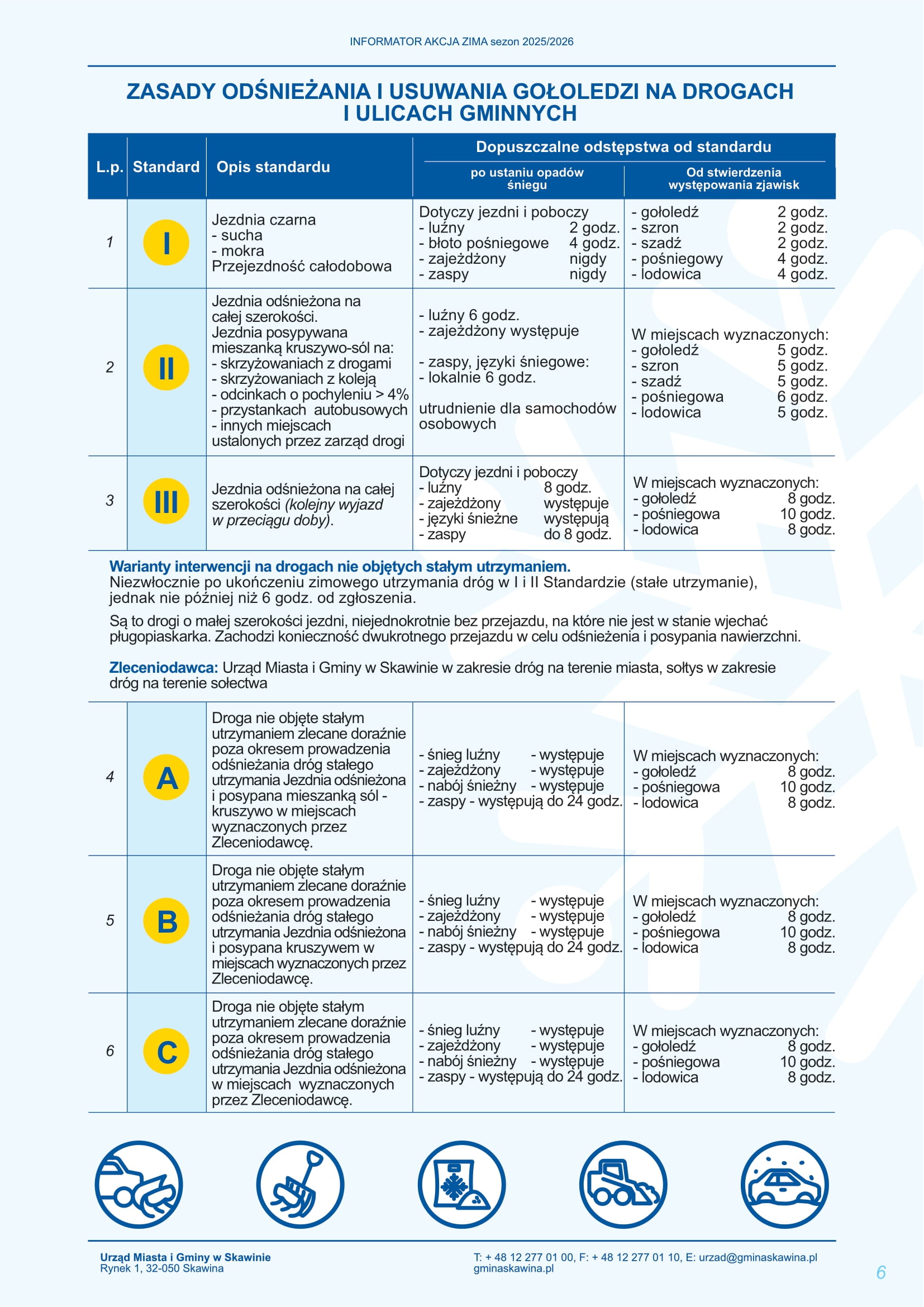 - przypisane im standardy odśnieżania i zwalczania śliskości,