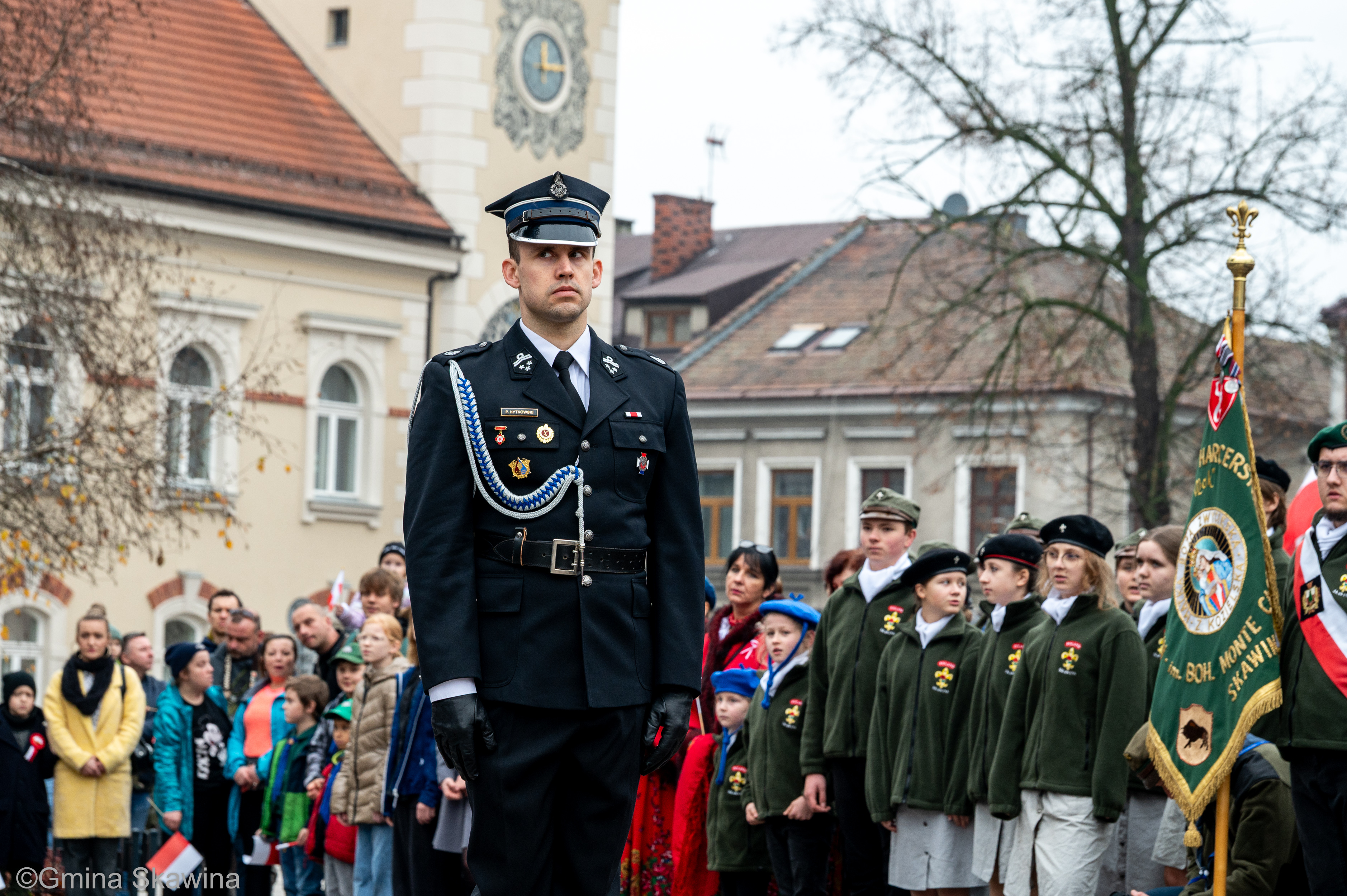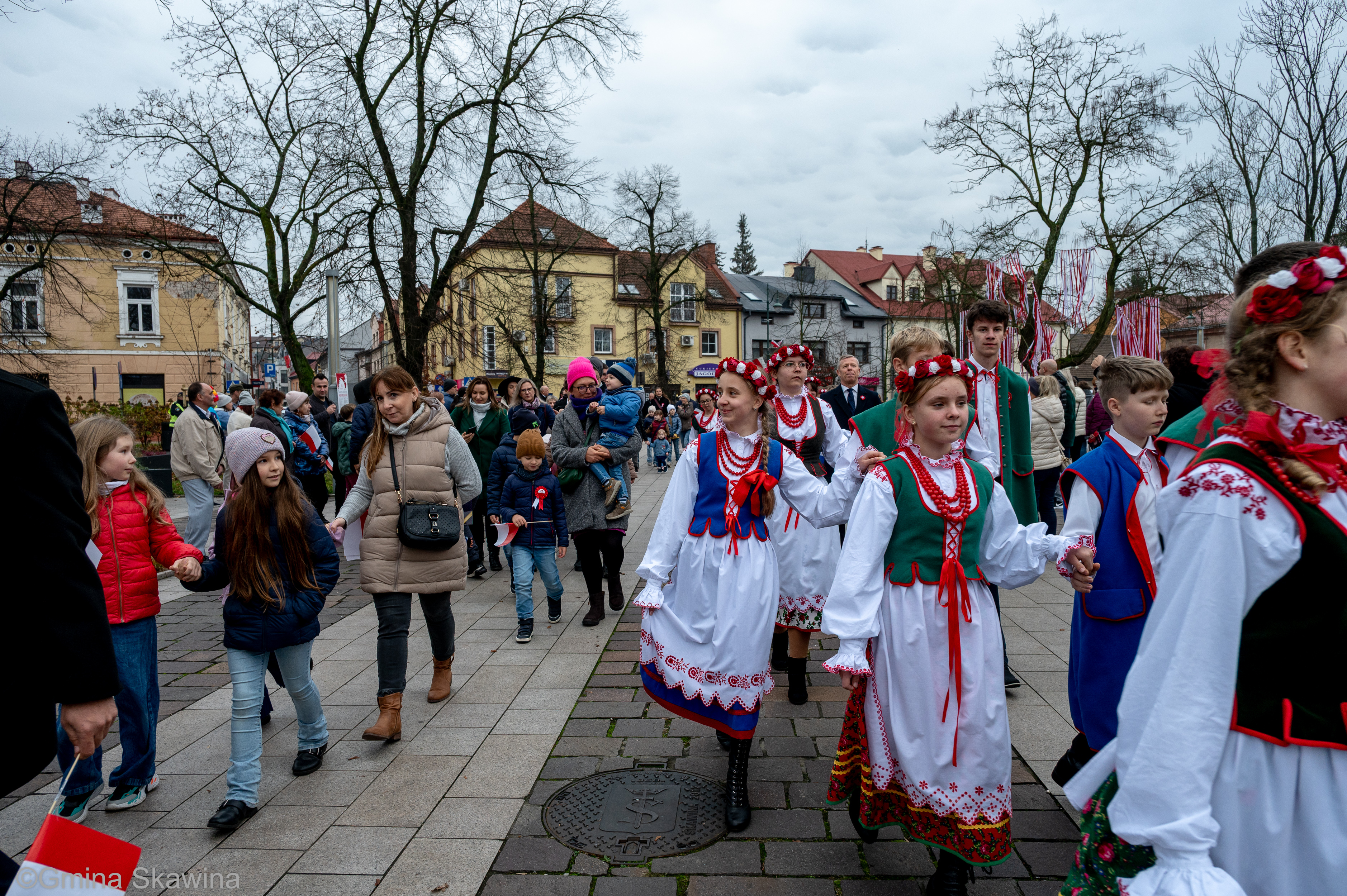 Po nabożeństwie ulicami miasta przeszedł uroczysty pochód patriotyczny, prowadzony przez Pawła Hytkowskiego komendanta Miejsko-Gminnego ZOSP w Skawinie przy akompaniamencie Orkiestry „Sygnał” z Radziszowa pod batutą Karola Pająka oraz poczty sztandarowe szkół, organizacji i instytucji.