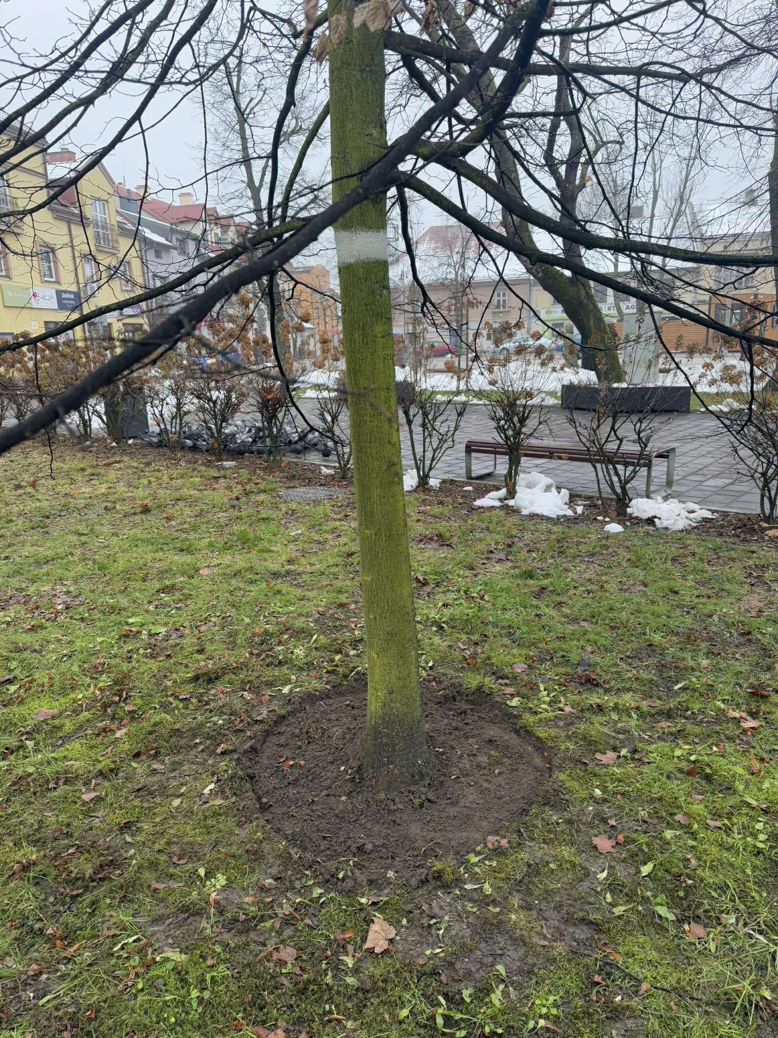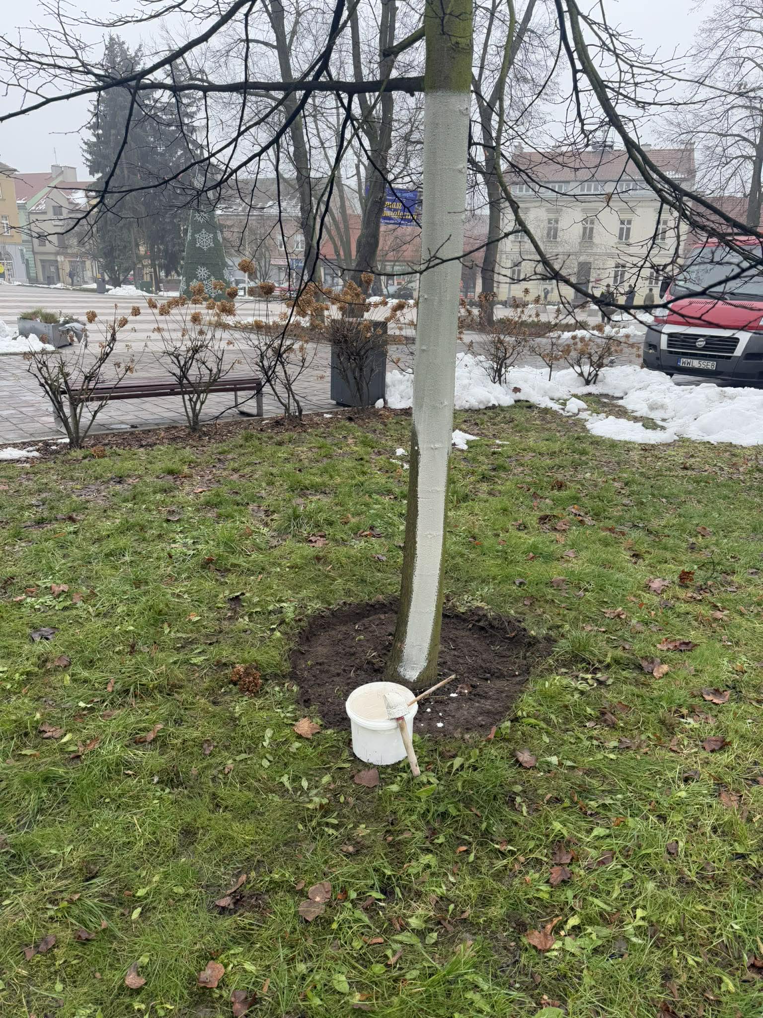 - wybiałkowano pnie 22 młodych drzew, zabezpieczając je przed uszkodzeniami mrozowymi,