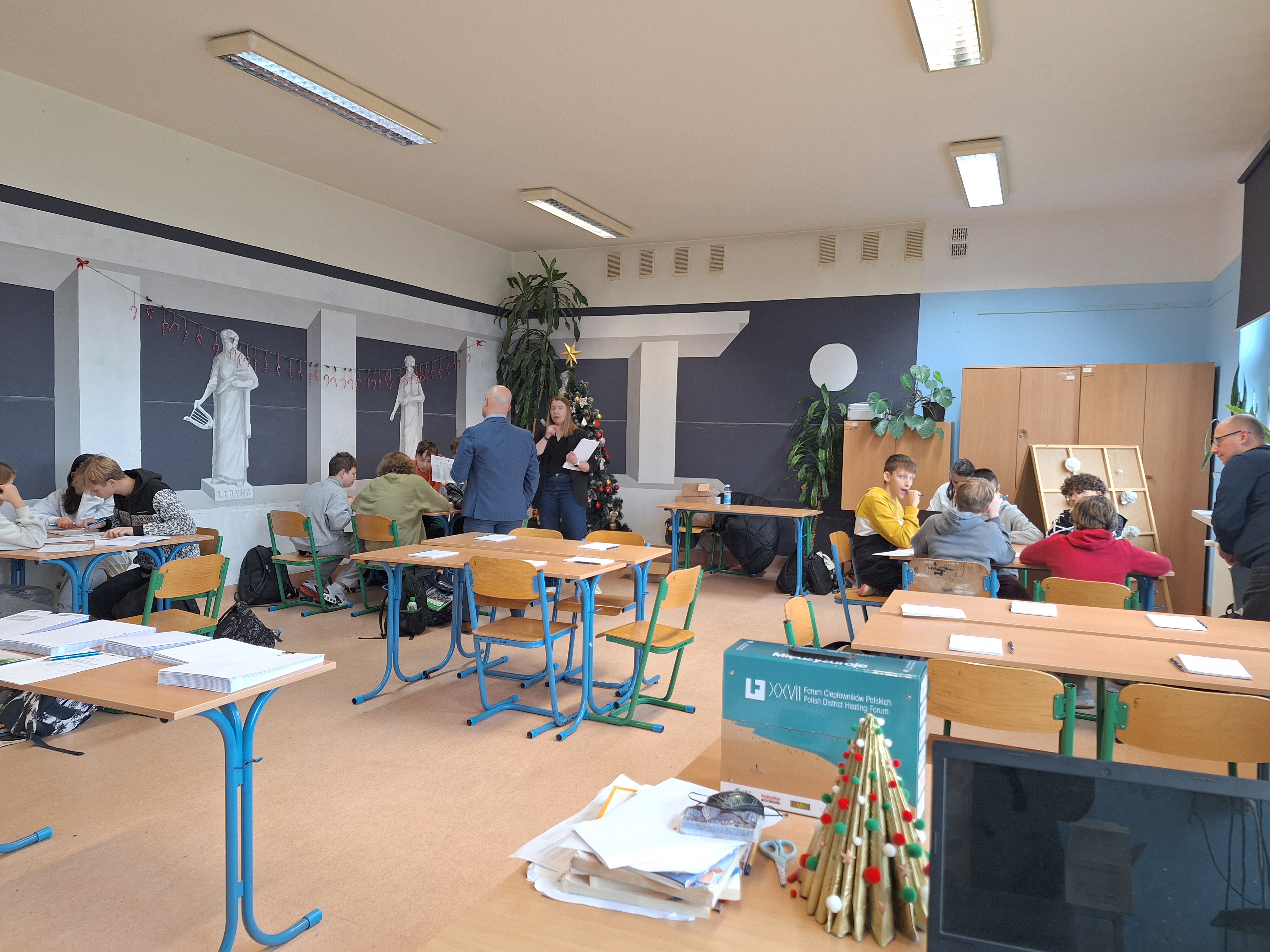 „Energetyczny Escape Room” to warsztaty mające na celu pogłębienie wiedzy uczestników na temat efektywnego korzystania z energii oraz odnawialnych źródeł energii. Warsztaty odbyły się 16 grudnia w Szkole Podstawowej nr 6 w Skawinie. Wzięli w nich udział uczniowie klas 7 (łącznie około 50 osób).