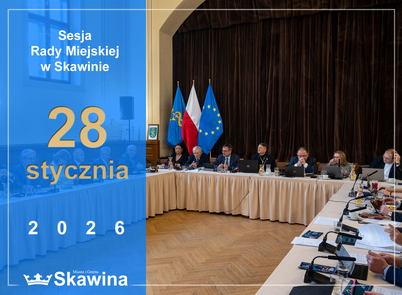 28 stycznia 2026 r. o godz. 09:00 w sali Pałacyku „Sokół” w Skawinie, przy ul. Mickiewicza 7 odbędzie się XXII zwyczajna sesja Rady Miejskiej w Skawinie.