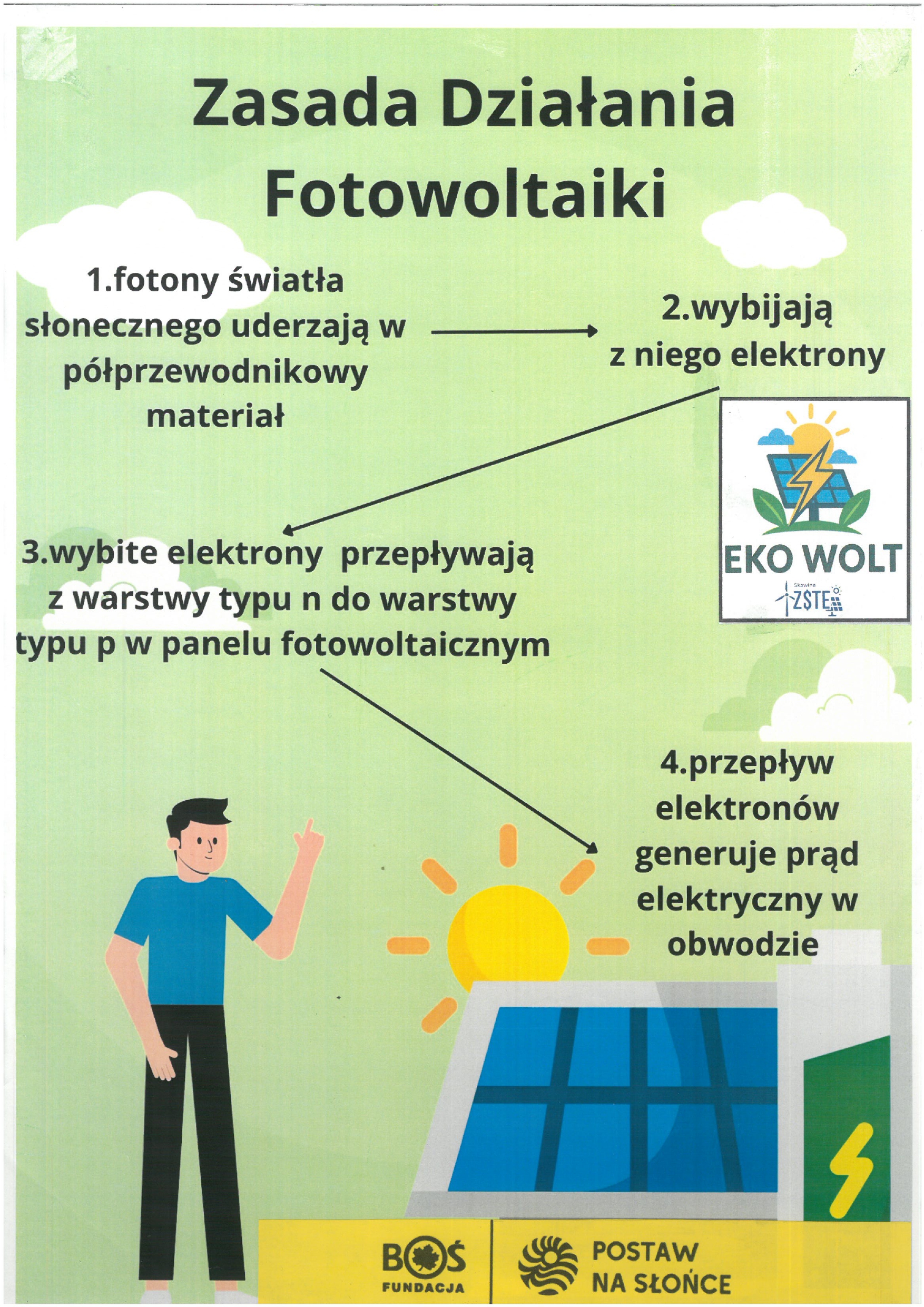 W bieżącym roku szkolnym drużyna EkoWolt z Technikum w ZSTE w Skawinie realizuje ogólnopolski projekt edukacyjny „Postaw na Słońce”. Wszystkie działania projektowe mają na celu upowszechnianie wiedzy o transformacji energetycznej zachodzącej w Polsce.