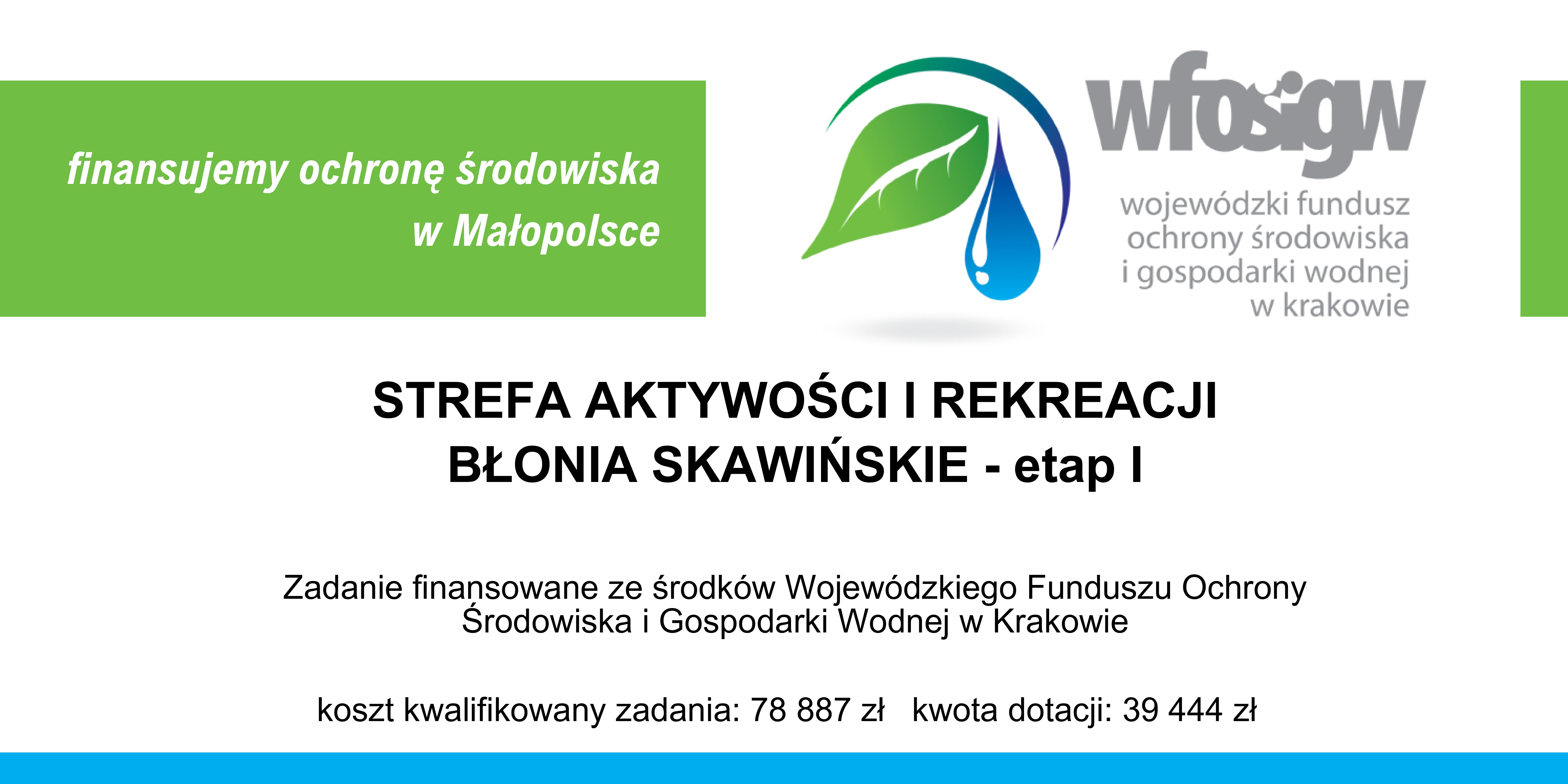 Realizujemy zadanie pn. „Strefa aktywności i rekreacji Błonia Skawińskie - etap I”. Inwestycja jest prowadzona w ramach Programu Priorytetowego „Małopolska infrastruktura rekreacyjno – sportowa - MIRS”.