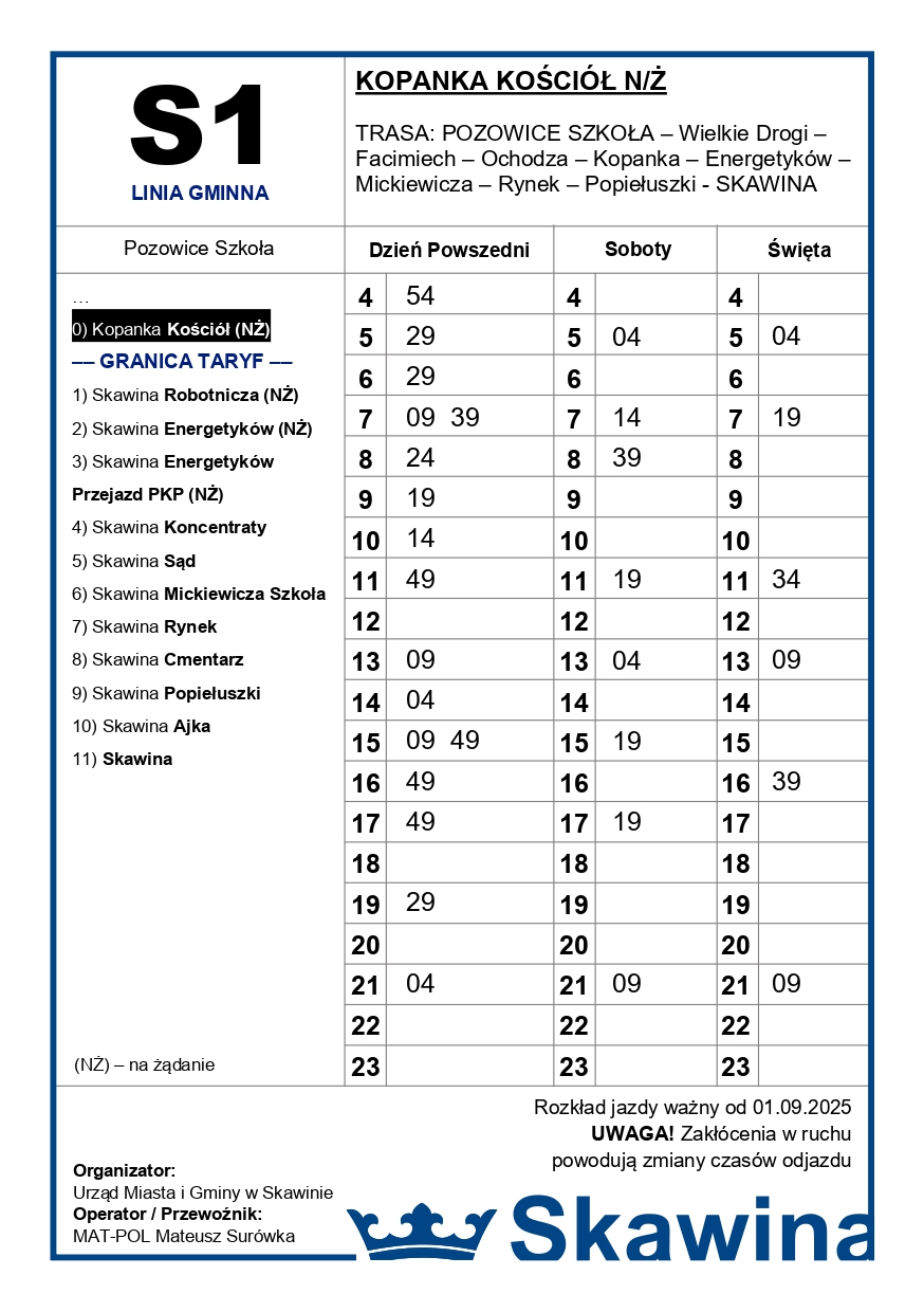 Kierunek: Skawina - Pozowice Szkoła - KLIKNIJ TUTAJ