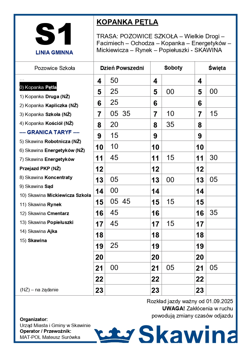 Kierunek: Skawina - Pozowice Szkoła - KLIKNIJ TUTAJ