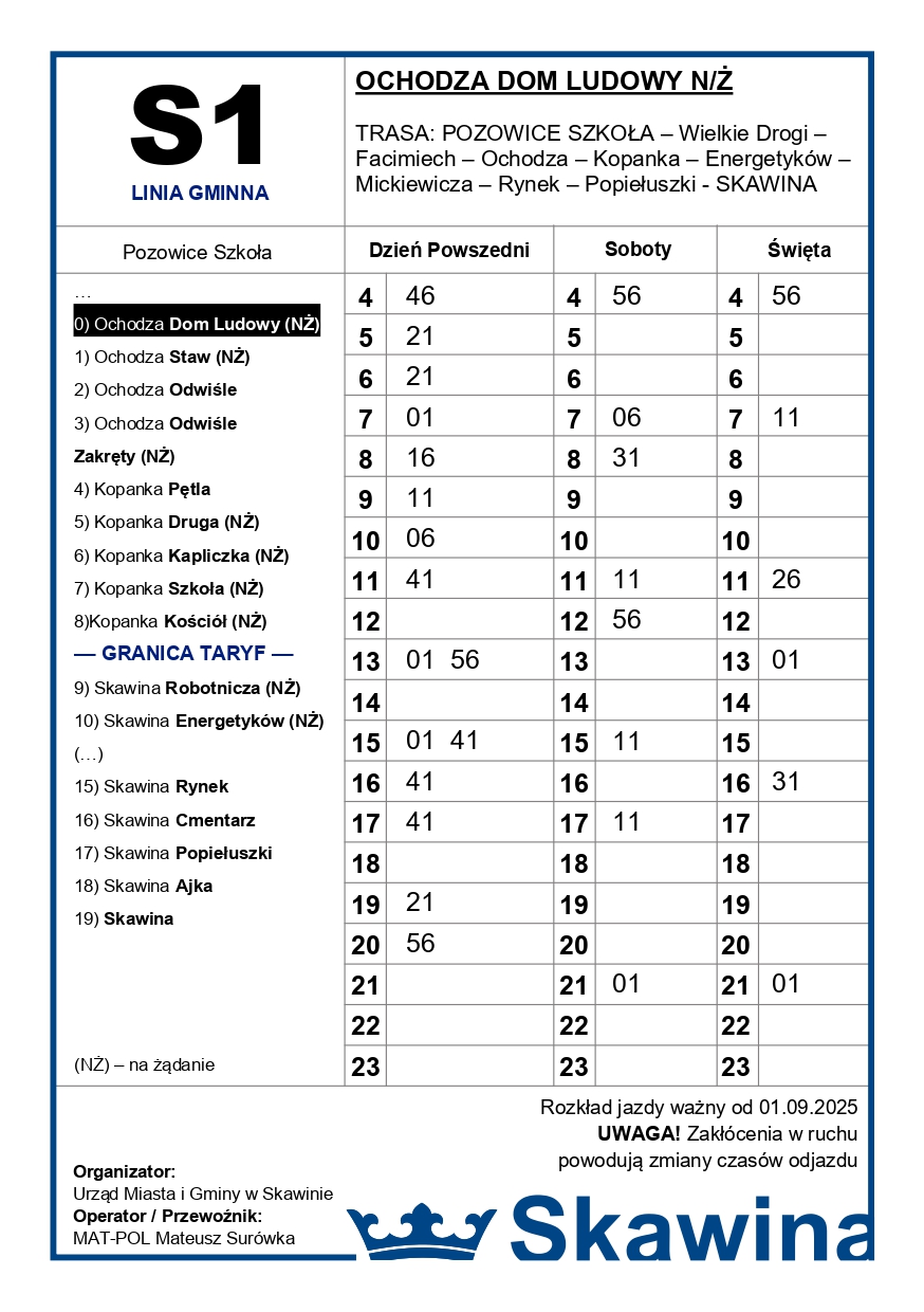 Kierunek: Skawina - Pozowice Szkoła - KLIKNIJ TUTAJ