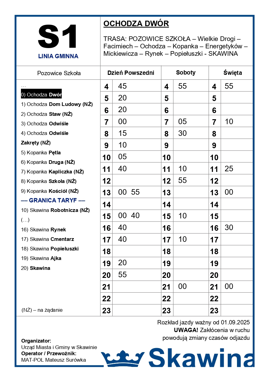 Kierunek: Skawina - Pozowice Szkoła - KLIKNIJ TUTAJ