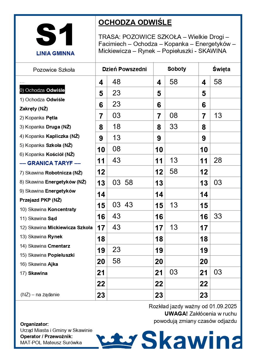 Kierunek: Skawina - Pozowice Szkoła - KLIKNIJ TUTAJ