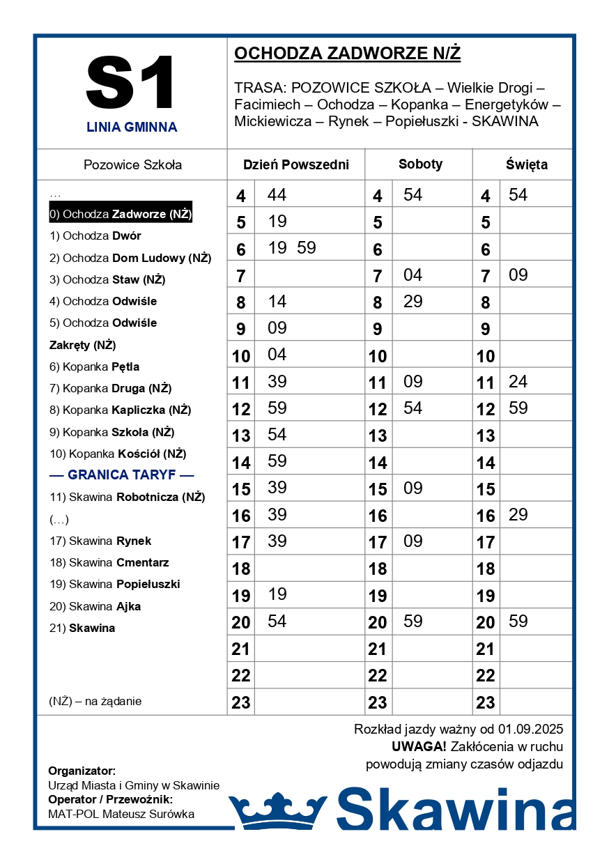 Kierunek: Skawina - Pozowice Szkoła - KLIKNIJ TUTAJ