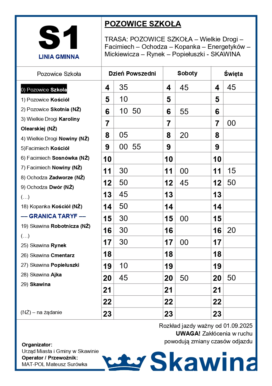 Kierunek: Skawina - Pozowice Szkoła - KLIKNIJ TUTAJ