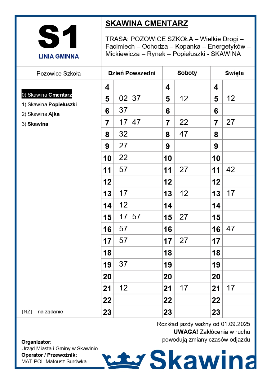 Kierunek: Skawina - Pozowice Szkoła - KLIKNIJ TUTAJ