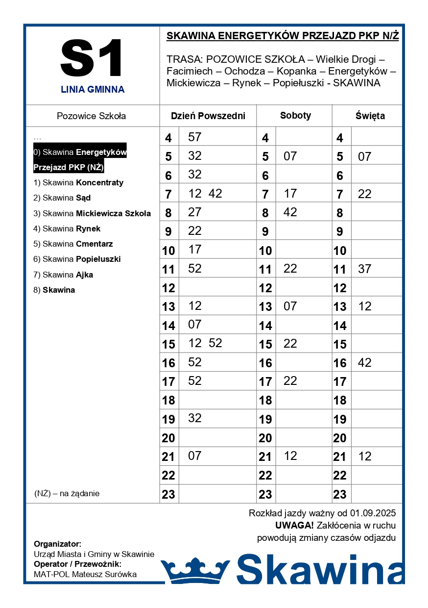 Kierunek: Skawina - Pozowice Szkoła - KLIKNIJ TUTAJ
