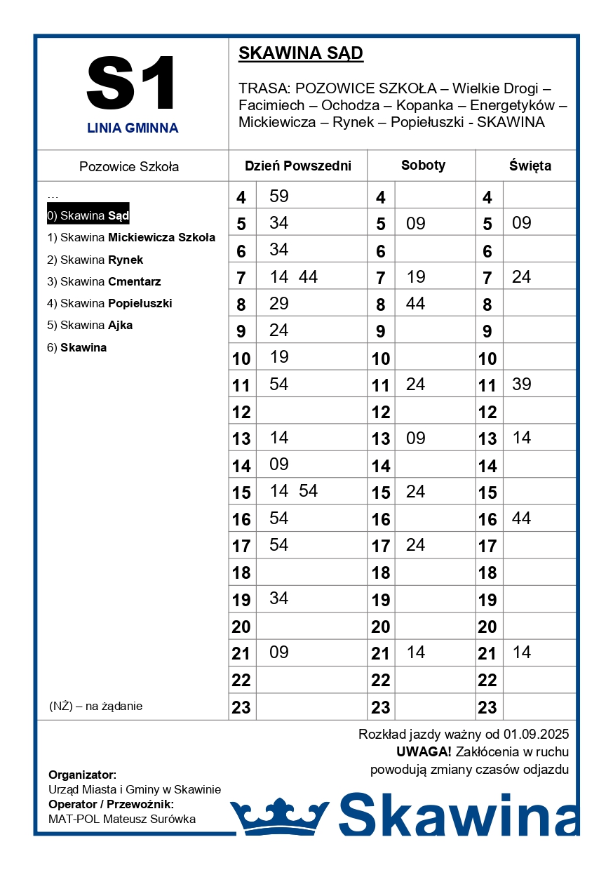 Kierunek: Skawina - Pozowice Szkoła - KLIKNIJ TUTAJ
