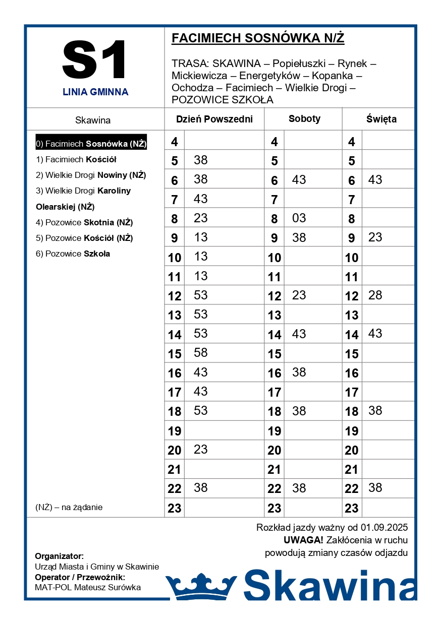 Kierunek: Pozowice Szkoła - Skawina - KLIKNIJ TUTAJ