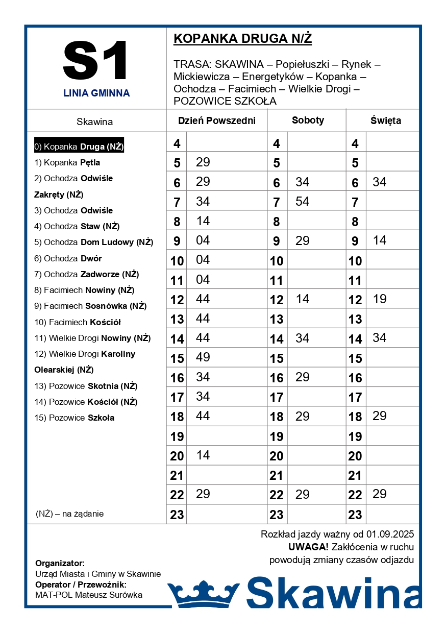 Kierunek: Pozowice Szkoła - Skawina - KLIKNIJ TUTAJ