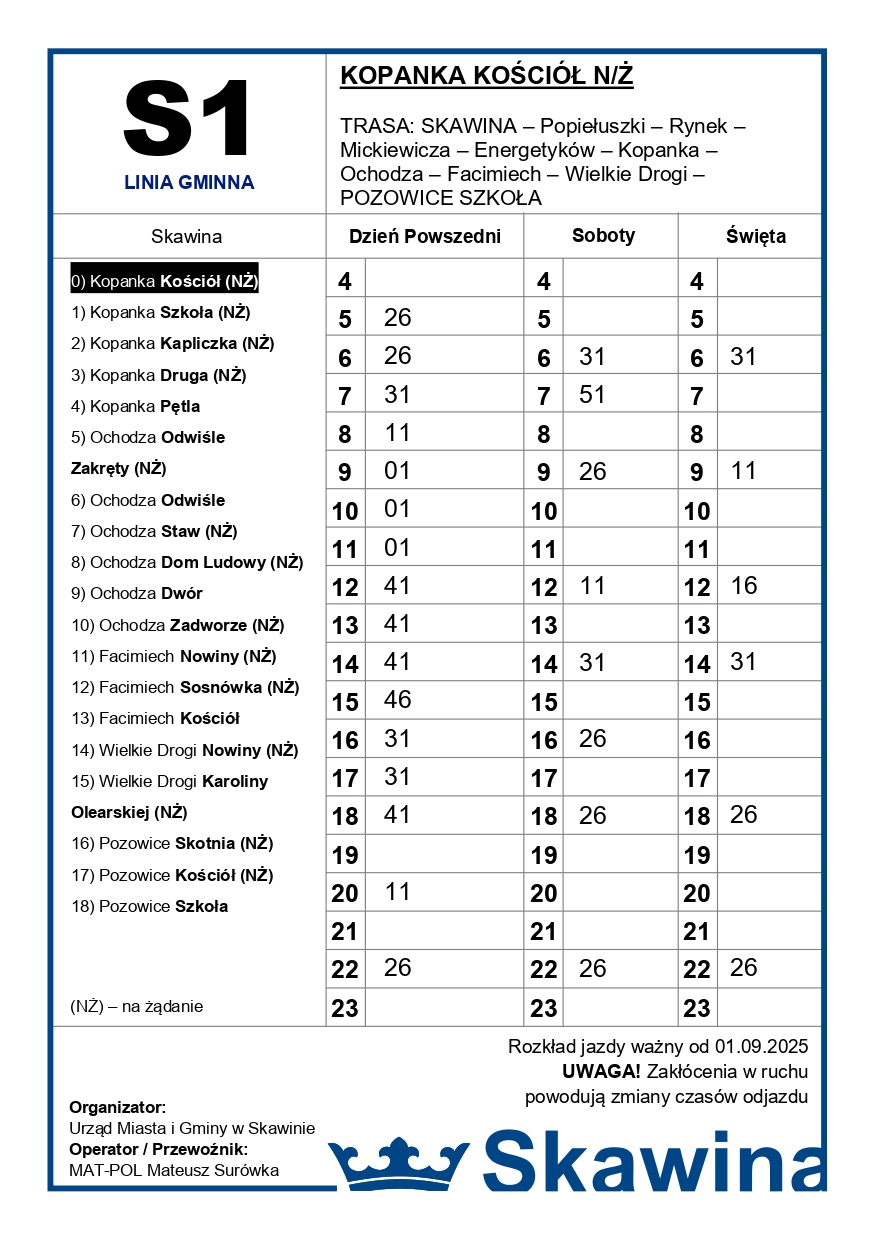 Kierunek: Pozowice Szkoła - Skawina - KLIKNIJ TUTAJ