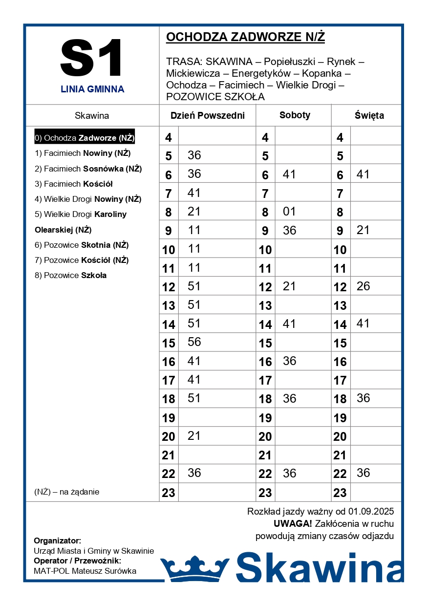 Kierunek: Pozowice Szkoła - Skawina - KLIKNIJ TUTAJ