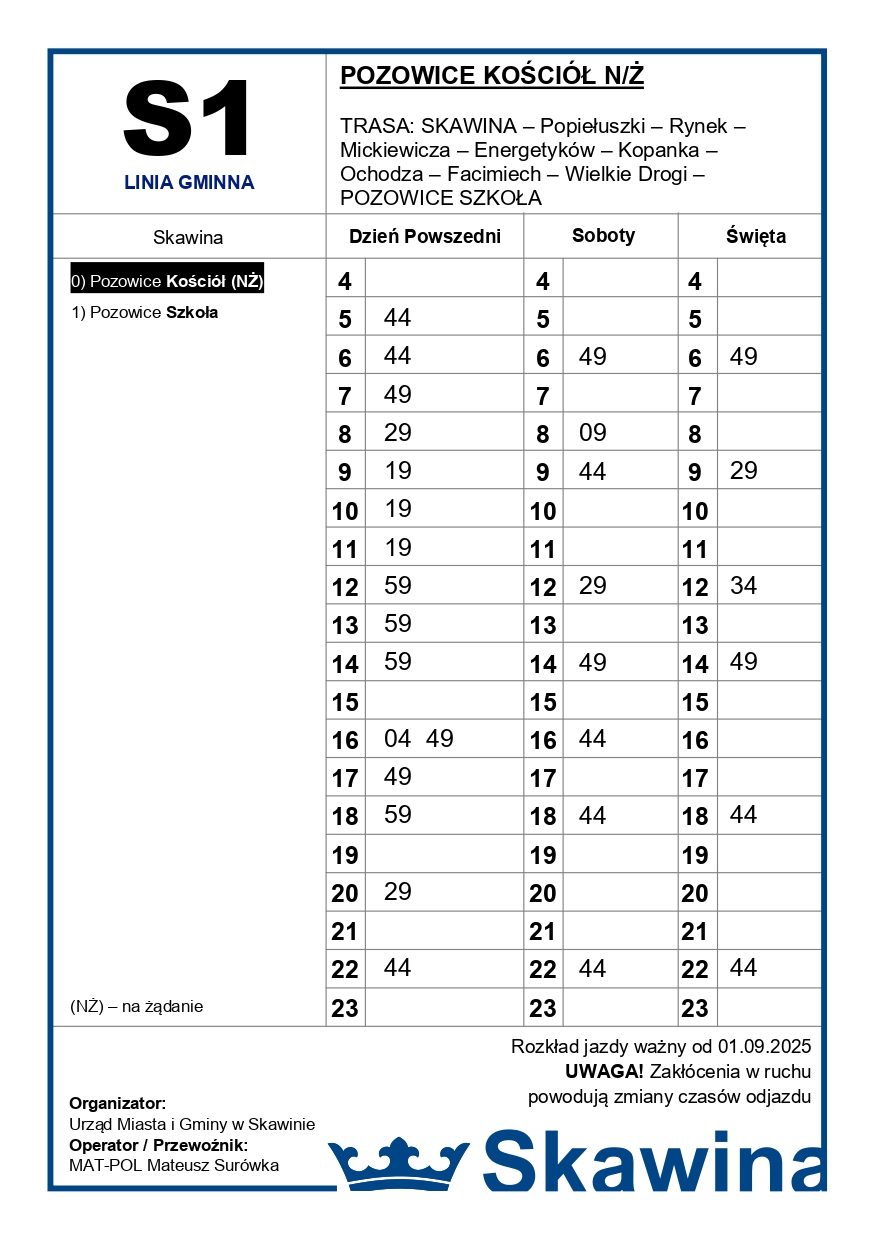 Kierunek: Pozowice Szkoła - Skawina - KLIKNIJ TUTAJ