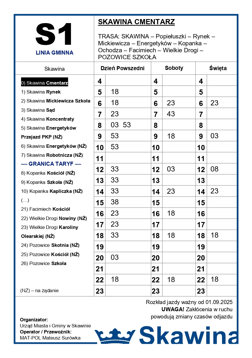 Kierunek: Pozowice Szkoła - Skawina - KLIKNIJ TUTAJ