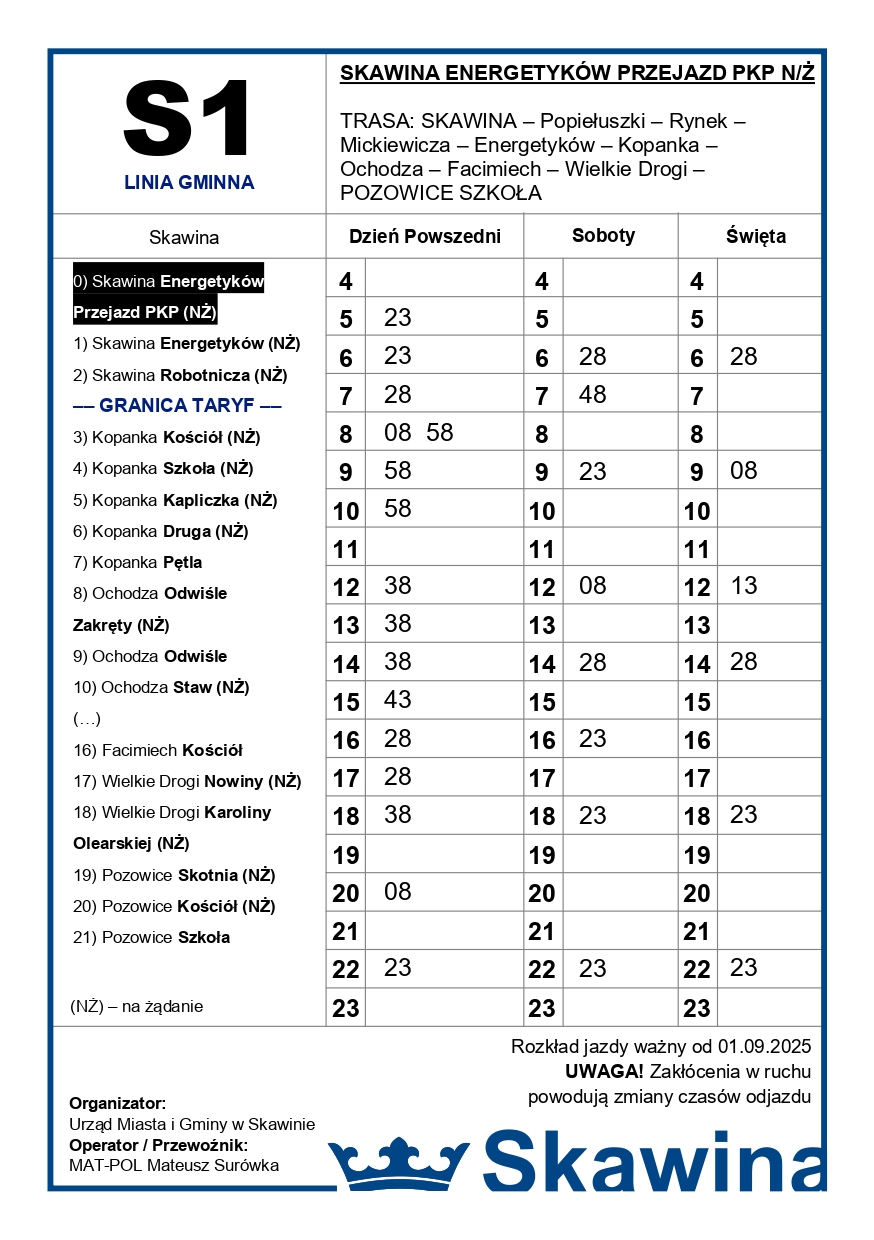Kierunek: Pozowice Szkoła - Skawina - KLIKNIJ TUTAJ