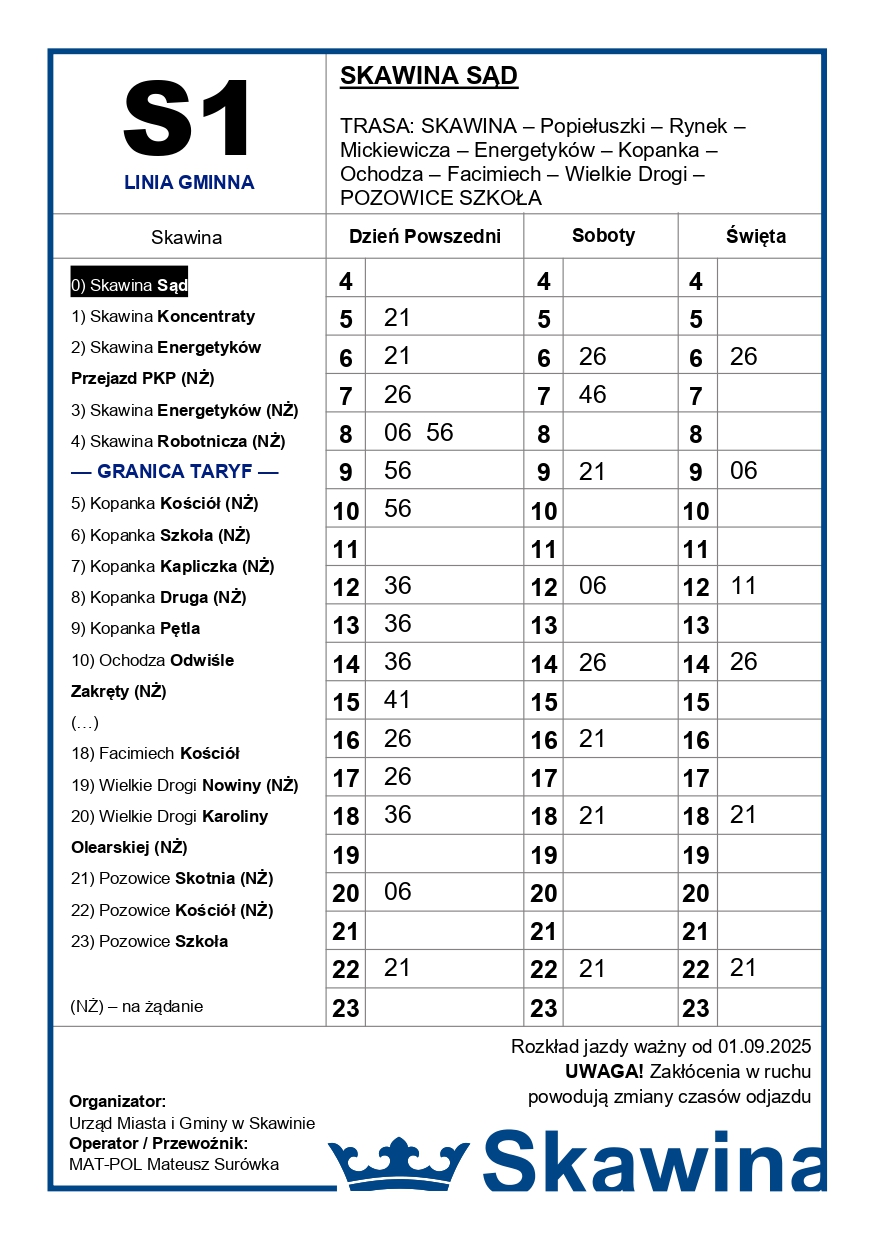 Kierunek: Pozowice Szkoła - Skawina - KLIKNIJ TUTAJ