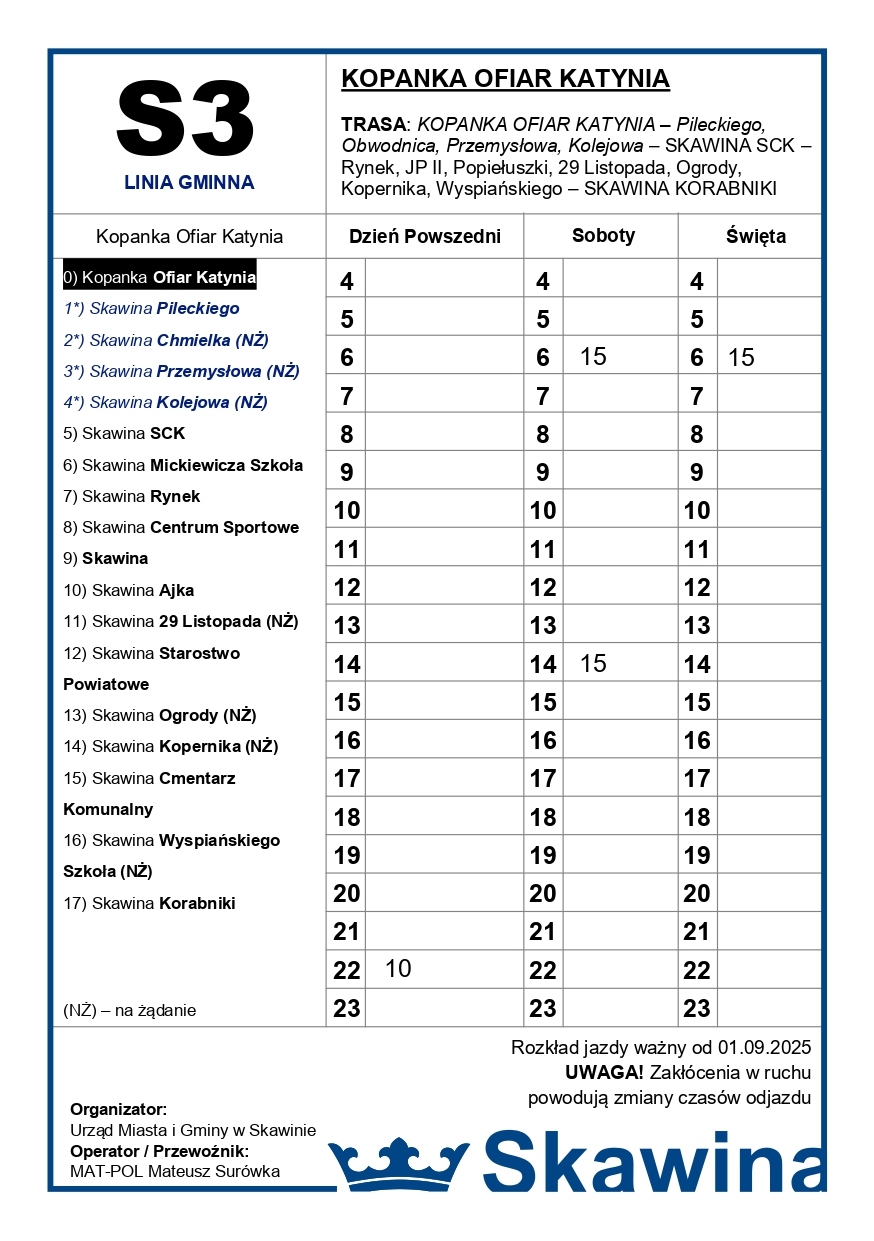 Kierunek: Skawina Korabniki - Skawina SCK - *Kopanka Ofiar Katynia - KLIKNIJ TUTAJ