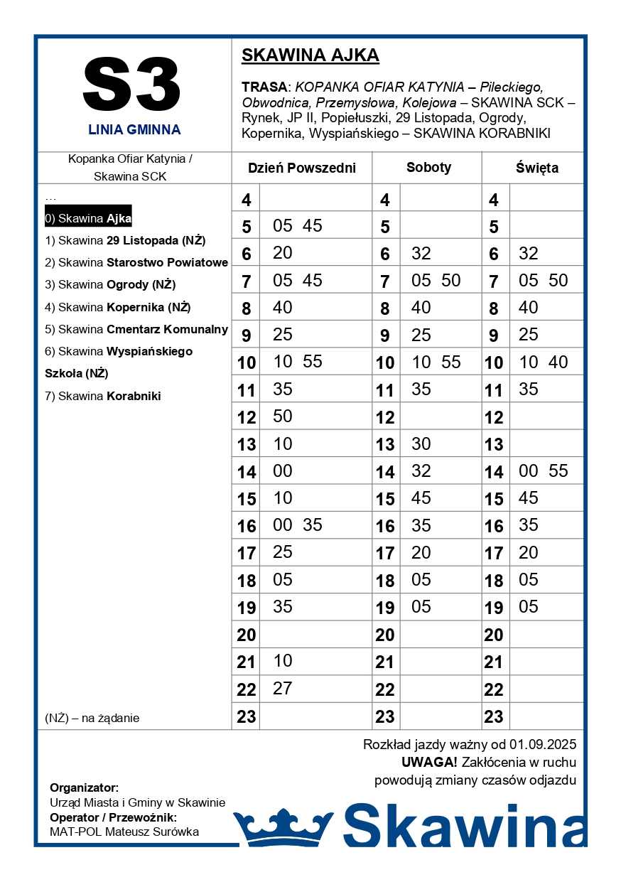 Kierunek: Skawina Korabniki - Skawina SCK - *Kopanka Ofiar Katynia - KLIKNIJ TUTAJ
