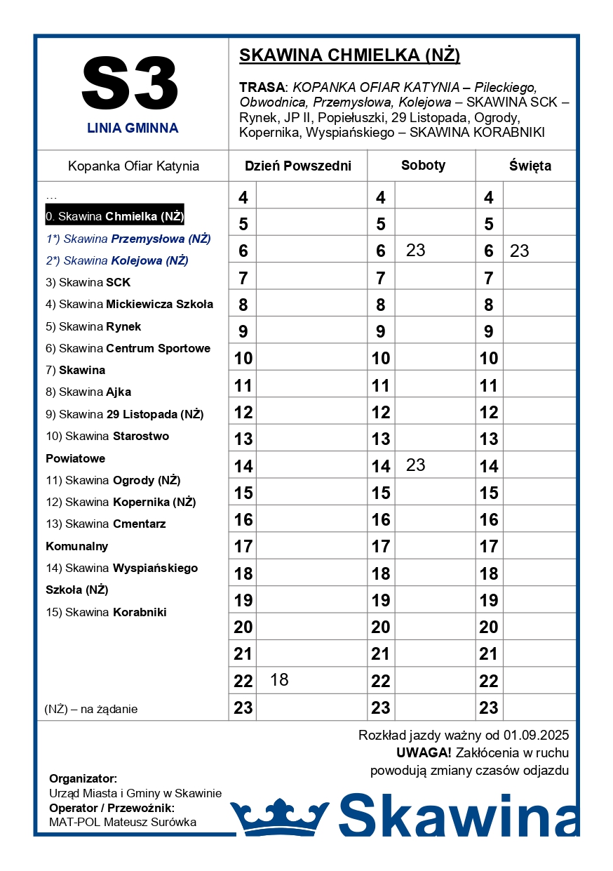 Kierunek: Skawina Korabniki - Skawina SCK - *Kopanka Ofiar Katynia - KLIKNIJ TUTAJ
