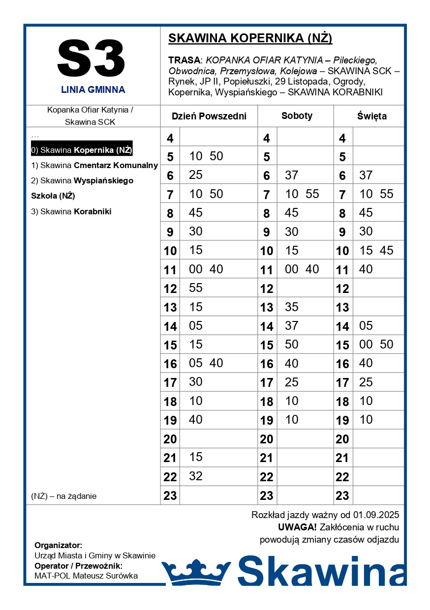 Kierunek: Skawina Korabniki - Skawina SCK - *Kopanka Ofiar Katynia - KLIKNIJ TUTAJ