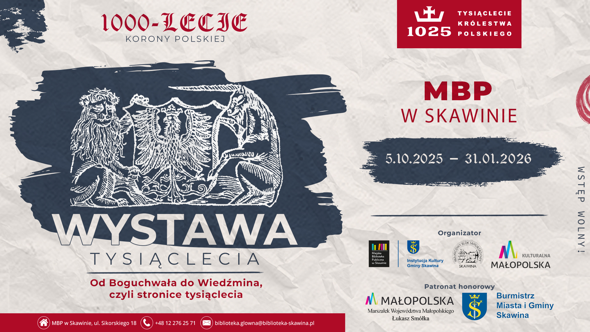 Wystawa jest częścią projektu „1000-lecie Korony Polskiej” organizowanego przez Prawicowy Blok Samorządowy w Skawinie. Więcej informacji o całym projekcie znajduje się na profilu Facebook: https://www.facebook.com/pbs.skawina