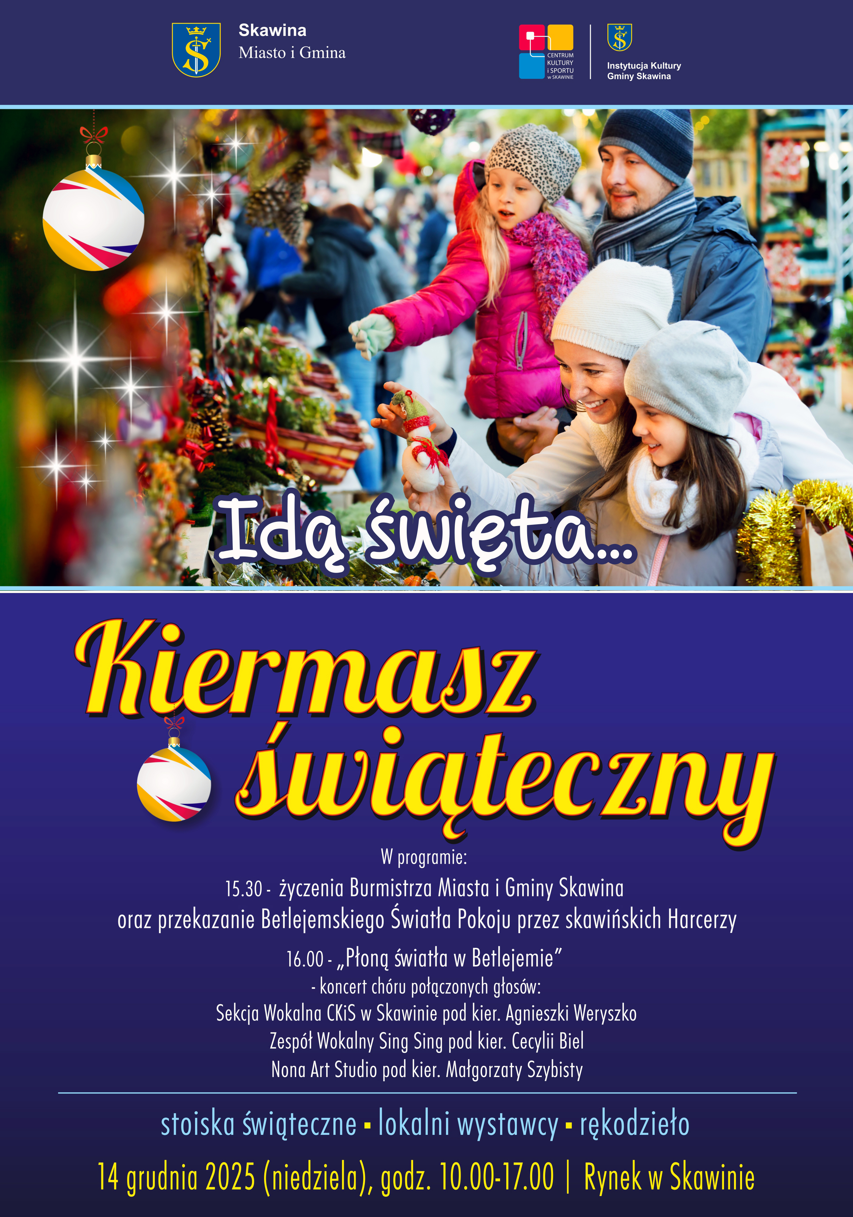 Centrum Kultury i Sportu w Skawinie zaprasza na wyjątkowe wydarzenie. 14 grudnia skawiński Rynek zamieni się w miejsce pełne świątecznej magii. Światełka, muzyka i zapachy napełnią nas Bożonarodzeniowym klimatem.